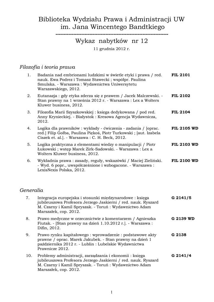 nabytki nr 12 [2012] - Wydział Prawa i Administracji UW