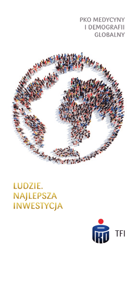 PKO MEDYCYNY I DEMOGRAFII GLOBALNY LUDZIE. NAJLEPSZA INWESTYCJA PKO MEDYCYNY I DEMOGRAFII GLOBALNY PKO Medycyny i Demografii Globalny to subfundusz inwestujący głównie w akcje spółek, których zyski zależą od zmian demograficznych na świecie. Rosnąca długość życia w krajach rozwiniętych i bogacące się społeczeństwa na rynkach wschodzących to okazja dla wielu firm z sektorów ochrony zdrowia, dóbr i usług konsumenckich, finansowego czy nowoczesnych technologii. Rola zarządzającego subfunduszem PKO Medycyny i Demografii Globalny polega na dokładnej analizie sytuacji spółek i czynników, które mogą stanowić o sukcesie rynkowym danej firmy, oraz o wyborze podmiotów z perspektywą ponadprzeciętnego wzrostu. Potencjał inwestycji PKO Medycyny i Demografii Globalny to: • unikalny produkt w ofercie krajowych TFI – przewaga nad konkurencją w nowatorskich rozwiązaniach inwestycyjnych • inwestycja w dynamicznie rozwijające się spółki będące beneficjentami zmian demograficznych • dokładna analiza i selekcja spółek, głównie z USA i Europy Zachodniej • szansa osiągnięcia ponadprzeciętnych stóp zwrotu w średnim i długim terminie • sprawdzony i doświadczony zespół zarządzających i analityków • produkt dostępny już od 100 zł w szerokiej sieci dystrybucji oraz Internecie Dla klientów, którzy: • oczekują wysokich zysków, zakładając odpowiednio długi horyzont inwestycyjny • nie posiadają możliwości samodzielnego inwestowania w akcje spółek – beneficjentów zmian demograficznych • szukają rozwiązania uzupełniającego ich dotychczasowe inwestycje • są świadomi wysokiego ryzyka związanego z inwestowaniem w subfundusz akcji Swoboda inwestowania PKO Medycyny i Demografii Globalny jest jednym z subfunduszy funkcjonujących w ramach funduszu inwestycyjnego PKO Parasolowy – fio. Oznacza to, że zamiana jednostek uczestnictwa między subfunduszami w ramach PKO Parasolowego – fio nie jest objęta podatkiem od zysków kapitałowych. Podatek jest naliczany dopiero w momencie odkupienia jednostek uczestnictwa zgromadzonych w subfunduszu lub przy ich konwersji do innego funduszu. Dowiedz się więcej: Wejdź na www.pkotfi.pl lub zgłoś się do oddziału PKO Banku Polskiego. Materiał ma charakter reklamowy, dane w nim zawarte nie stanowią oferty w rozumieniu art. 66 Kodeksu cywilnego, usługi doradztwa inwestycyjnego ani udzielania rekomendacji dotyczących instrumentów finansowych lub ich emitentów w rozumieniu ustawy o obrocie instrumentami finansowymi, a także nie są formą świadczenia doradztwa podatkowego ani pomocy prawnej. Subfundusz PKO Medycyny i Demografii Globalny nie gwarantuje osiągnięcia założonego celu inwestycyjnego ani uzyskania określonego wyniku inwestycyjnego. Należy liczyć się z możliwością utraty części wpłaconych środków. Szczegółowy opis czynników ryzyka związanych z inwestowaniem w jednostki uczestnictwa subfunduszu PKO Medycyny i Demografii Globalny znajduje się w prospekcie informacyjnym oraz w kluczowych informacjach dla inwestorów (KIID) dostępnych u dystrybutorów i na stronie www.pkotfi.pl. Lista dystrybutorów jest dostępna pod numerem infolinii 801 32 32 80. Przed dokonaniem inwestycji należy zapoznać się z treścią prospektu informacyjnego oraz KIID subfunduszu PKO Medycyny i Demografii Globalny. Informacje o pobieranych opłatach manipulacyjnych znajdują się w tabeli opłat dostępnej u dystrybutorów i na stronie www.pkotfi.pl. Ze względu na skład portfela i realizowaną strategię zarządzania wartość jednostki uczestnictwa może podlegać dużej zmienności. Subfundusz może inwestować powyżej 35% wartości swoich aktywów w instrumenty rynku pieniężnego emitowane, poręczane lub gwarantowane przez Narodowy Bank Polski lub Skarb Państwa. PKO TFI SA działa na podstawie zezwolenia Komisji Nadzoru Finansowego. Infolinia: 801 32 32 80 + 48 22 358 56 56 opłata zgodna z taryfą operatora Informacja: www.pkotfi.pl pieczęć oddziału PKO Banku Polskiego PAŹDZIERNIK 2016