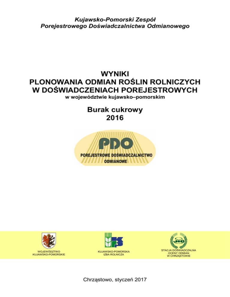 WYNIKI PLONOWANIA ODMIAN ROŚLIN ROLNICZYCH W
