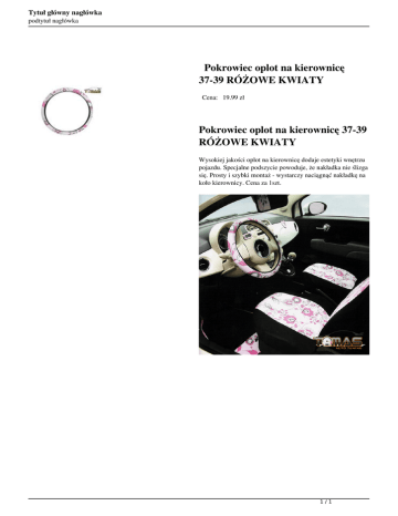 Tytuł główny nagłówka podtytuł nagłówka Pokrowiec oplot na kierownicę 37-39 RÓŻOWE KWIATY Cena: 19.99 zł Pokrowiec oplot na kierownicę 37-39 RÓŻOWE KWIATY Wysokiej jakości oplot na kierownicę dodaje estetyki wnętrzu pojazdu. Specjalne podszycie powoduje, że nakładka nie ślizga się. Prosty i szybki montaż - wystarczy naciągnąć nakładkę na koło kierownicy. Cena za 1szt. 1/1 Powered by TCPDF (www.tcpdf.org)