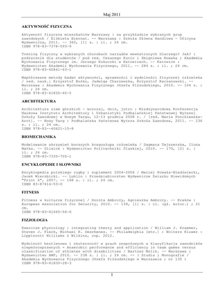 Maj 2011 1 - Biblioteka Główna Akademii Wychowania Fizycznego
