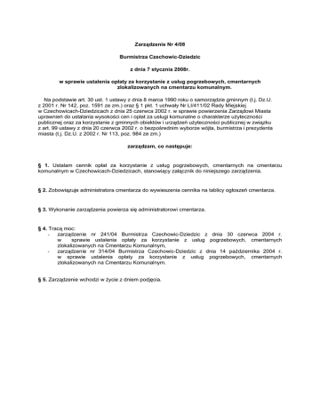 Zarządzenie Nr 4/08 Burmistrza Czechowic
