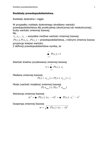 x1 , x2 ,...xn – wszystkie możliwe wartości zmiennej losowej