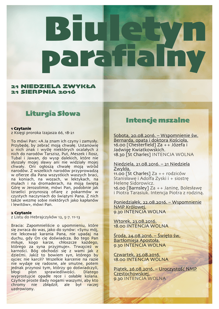 Biuletyn parafialny - Polska Parafia w Sheffield