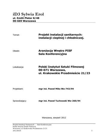 Projekt instalacji sanitarnych - Polski Instytut Sztuki Filmowej