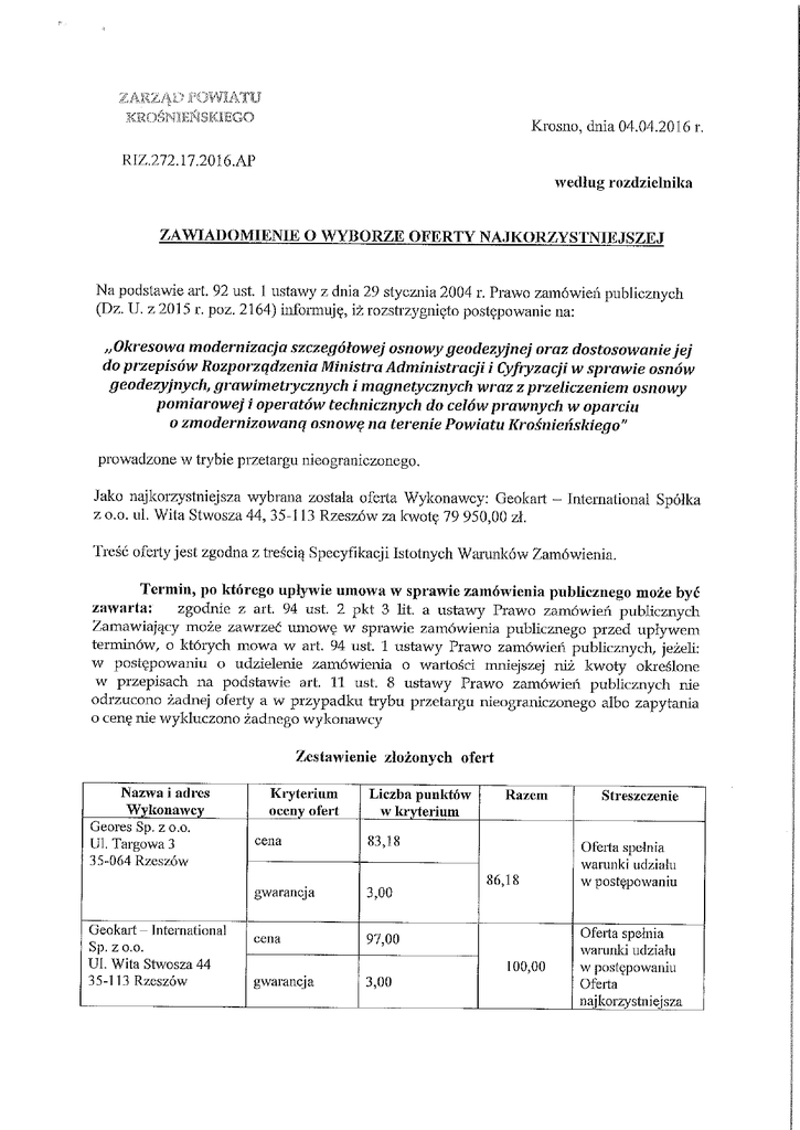 Krosno, dnia 04.04.2016 r.