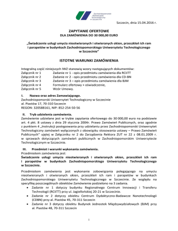 Istotne Warunki Zamowienia - Zachodniopomorski Uniwersytet