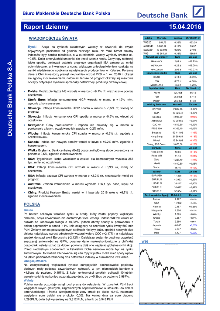 Raport dzienny - Biuro Maklerskie Deutsche Bank Polska