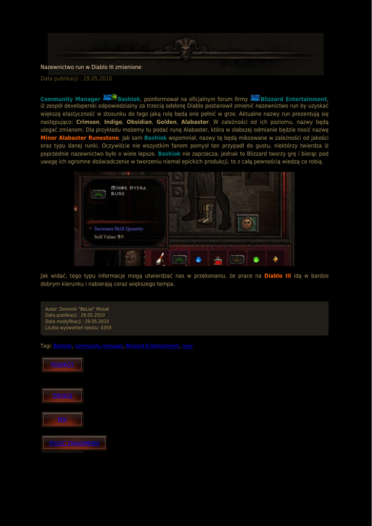 Nazewnictwo run w Diablo III zmienione Data