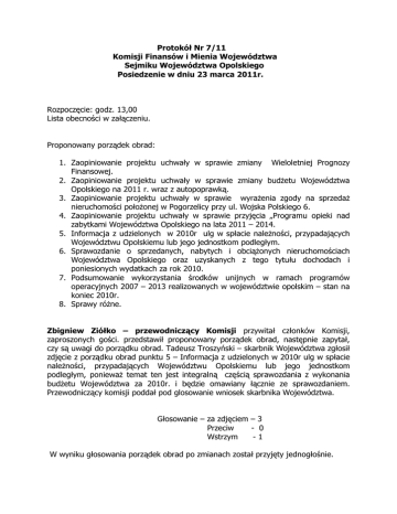 Protokół z posiedzenia 7/11 Komisji Finansów i Mienia