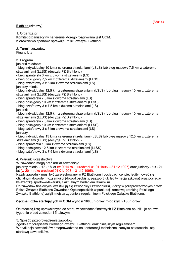 (*2014) Biathlon (zimowy) 1. Organizator Komitet organizacyjny na