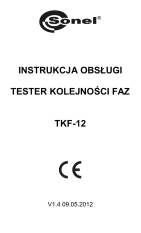 INSTRUKCJA OBSŁUGI TESTER KOLEJNOŚCI FAZ TKF-12 V1.4 09.05.2012 Spis treści 1. Środki zapewniające bezpieczeństwo ...................................... 2 2. Test kierunku wirowania faz ..................................................... 4 3. Czyszczenie i konserwacja ...................................................... 4 4. Magazynowanie....................................................................... 5 5. Rozbiórka i utylizacja ............................................................... 5 6. Dane techniczne ...................................................................... 5 7. Wyposażenie ........................................................................... 5 8. Producent ................................................................................ 6 Dziękujemy za zakup naszego testera kolejności faz. Tester TKF-12 jest przyrządem nowoczesnym, charakteryzującym się wysoką jakością oraz prostotą i bezpieczeństwem obsługi. Jednakże przeczytanie niniejszej instrukcji pozwoli uniknąć błędów podczas testów i zapobiegnie ewentualnym problemom przy obsłudze przyrządu. Uwaga: Producent zastrzega sobie prawo wprowadzania zmian w wyglądzie, wyposażeniu i danych technicznych przyrządu. 1. Środki zapewniające bezpieczeństwo Przyrząd TKF-12 odpowiada wymaganiom bezpieczeństwa wg normy PN-EN 61010-1. Dla bezpieczeństwa własnego i przyrządu należy przestrzegać zasad opisanych w tej instrukcji. • • • Ostrzeżenia: Nie sprawdzaj obiektów w środowisku zawilgoconym, zawierającym gazy (materiały) wybuchowe lub łatwopalne, parę wodną lub kurz. Po przeniesieniu przyrządu ze środowiska zimnego do ciepłego odczekaj przed użyciem 0,5h w celu aklimatyzacji, w razie potrzeby wytrzyj skroploną parę wodną. Podczas pomiarów nie dotykaj części metalowych gniazdka, końcówek przewodów, elementów mocujących, obwodów itp. 2 • Zapewnij sobie dobrą izolację od testowanego obiektu. • Nie wykonuj pomiarów przyrządem niesprawnym, z uszkodzoną obudową lub przewodami (nadłamania, pęknięcia, deformacje, zanieczyszczenie itp.). Przyrząd TKF-12 może być używany jedynie przez wykwalifikowane osoby posiadające odpowiednie uprawnienia do prac przy instalacjach elektrycznych. Posługiwanie się przyrządem przez osoby nieuprawnione może spowodować uszkodzenie przyrządu i być źródłem poważnego niebezpieczeństwa dla użytkownika. Tester można podłączyć do sieci energetycznej tylko za pomocą dedykowanych przewodów dostarczonych przez producenta. Tylko takie przewody gwarantują zgodność z przepisami bezpieczeństwa. Podłączenie do testera napięcia międzyfazowego większego niż 760V AC może spowodować jego uszkodzenie i zagrożenie dla użytkownika. Każde inne zastosowanie przyrządu niż podane w tej instrukcji może spowodować jego uszkodzenie i być źródłem poważnego niebezpieczeństwa dla użytkownika. • • • • 3 2. Test kierunku wirowania faz • Podłączyć sondy pomiarowe testera TKF-12 do punktów, gdzie występuje spodziewane napięcie trójfazowe (poniżej przykładowy rysunek). • • Jeśli fazy w danych punktach pomiarowych są zgodne z opisem L1, L2, L3 na testerze, zaświeci się zielona dioda R, w przeciwnym wypadku czerwona dioda L. Świecenie danej neonówki (L1, L2, L3) sygnalizuje istnienie napięcia międzyfazowego większego niż 100V między odpowiadającą jej sondą a którąś z pozostałych sond. Uwaga: Błędne wskazania mogą być powodowane przez: - podłączenie dwóch sond do jednej fazy, - podłączenie jednej z sond do przewodu neutralnego, - brak podłączenia którejś z sond do sieci energetycznej. 3. Czyszczenie i konserwacja UWAGA! Należy stosować jedynie metody konserwacji podane przez producenta w niniejszej instrukcji. Tester można czyścić miękką, wilgotną flanelą używając ogólnie dostępnych detergentów. Nie należy używać żadnych rozpuszczalników, ani środków czyszczących, które mogłyby porysować obudowę (proszki, pasty itp.). Układ elektroniczny testera nie wymaga konserwacji. 4 4. Magazynowanie Przy przechowywaniu testera należy przestrzegać poniższych zaleceń: • upewnić się, że tester jest suchy. 5. Rozbiórka i utylizacja Zużyty sprzęt elektryczny i elektroniczny należy gromadzić selektywnie, tj. nie umieszczać z odpadami innego rodzaju. Zużyty sprzęt elektroniczny należy przekazać do punktu zbiórki zgodnie z ustawą z dnia 29 lipca 2005 o zużytym sprzęcie elektrycznym i elektronicznym (Dz.U. Nr 180, poz. 1495). Przed przekazaniem sprzętu do punktu zbiórki nie należy samodzielnie demontować żadnych części z tego sprzętu. Należy przestrzegać lokalnych przepisów dotyczących wyrzucania opakowań, zużytych baterii i akumulatorów. 6. Dane techniczne a) b) c) d) e) f) g) h) i) j) k) l) m) rodzaj izolacji: podwójna, zgodnie z PN-EN 61010-1 kategoria pomiarowa: III 600V wg PN-EN 61010-1 stopień ochrony obudowy wg PN-EN 60529: IP42 zakres częstotliwości: 10 ÷ 70Hz zakres nominalnych napięć międzyfazowych: 120 ÷ 690VAC maksymalne międzyfazowe napięcie pracy: 760VAC prąd pomiarowy (na każdą fazę): <3.5mA temperatura pracy: -10 ÷ 45 ºC temperatura przechowywania: -20 ÷ 60 ºC dopuszczalna wilgotność pracy: 20 ÷ 80% zasilanie testera: z badanej instalacji elektr. wymiary: 130x72x31mm masa z przewodami: ok. 340g 7. Wyposażenie Standardowe: • przewód pomiarowy na stałe 1,2m (czerwony, czarny i żółty) – 3 szt, • krokodylek czarny K01 – 1 szt, • sonda z wtykiem bananowym (czerwona, czarna i żółta) – 3 szt, 5 • instrukcja obsługi. Dodatkowe: • krokodylek czerwony i żółty, • futerał, • adapter AGT-16P, • adapter AGT-32P, • adapter AGT-63P. 8. Producent Producentem przyrządu prowadzącym serwis gwarancyjny i pogwarancyjny jest: SONEL S. A. ul. Wokulskiego 11 58-100 Świdnica tel. (74) 858 38 78 (Dział Handlowy) (74) 858 38 79 (Serwis) fax 
