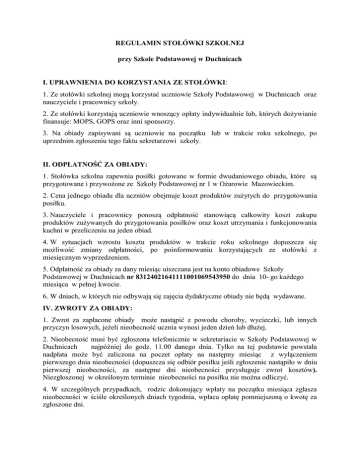 REGULAMIN STOŁÓWKI SZKOLNEJ
