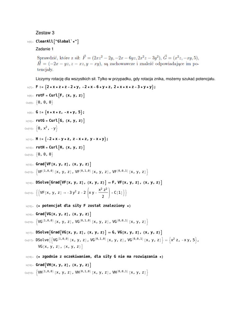 Liczymy rotację dla wszystkich sił. Tylko w przypadku, gdy rotacja znika, możemy szukać potencjału.