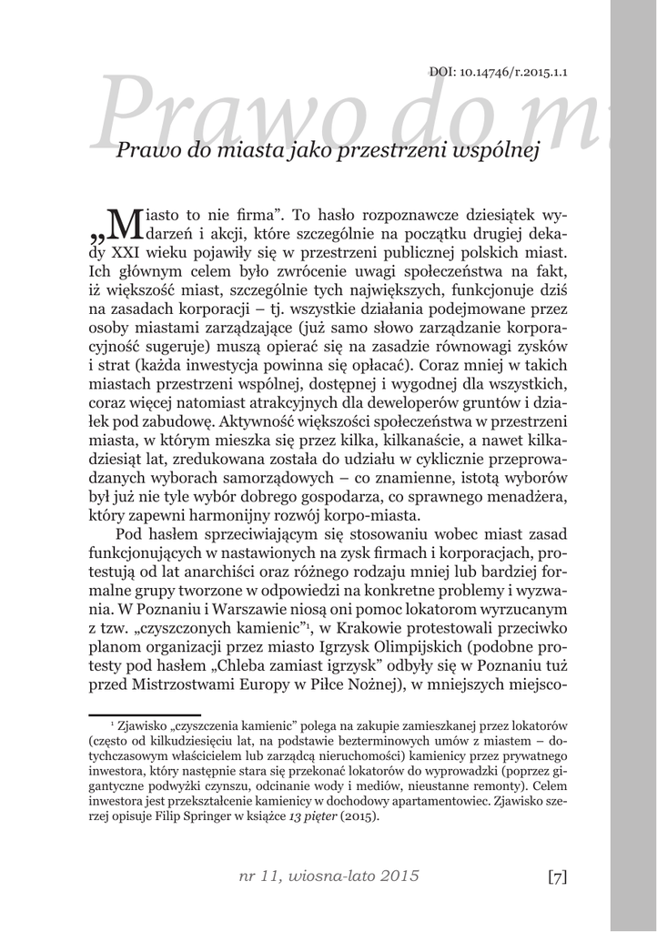 Prawo do miasta jako przestrzeni wspólnej