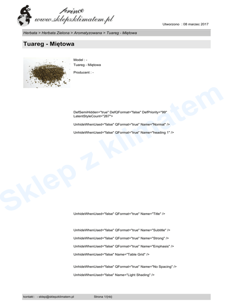 Utworzono : 08 marzec 2017 Herbata > Herbata Zielona > Aromatyzowana > Tuareg - Miętowa Tuareg - Miętowa Model : Tuareg - Miętowa Producent : - i l k UnhideWhenUsed="false" QFormat="true" Name="Normal" /> UnhideWhenUsed="false" QFormat="true" Name="heading 1" /> S e l k z p UnhideWhenUsed="false" QFormat="true" Name="Title" /> UnhideWhenUsed="false" QFormat="true" Name="Subtitle" /> UnhideWhenUsed="false" QFormat="true" Name="Strong" /> UnhideWhenUsed="false" QFormat="true" Name="Emphasis" /> UnhideWhenUsed="false" Name="Table Grid" /> UnhideWhenUsed="false" QFormat="true" Name="No Spacing" /> UnhideWhenUsed="false" Name="Light Shading" /> kontakt : - [email protected] Strona 1/{nb} m e t a m DefSemiHidden="true" DefQFormat="false" DefPriority="99" LatentStyleCount="267"> Utworzono : 08 marzec 2017 Herbata > Herbata Zielona > Aromatyzowana > Tuareg - Miętowa Tuareg - Miętowa UnhideWhenUsed="false" Name="Light List" /> UnhideWhenUsed="false" Name="Light Grid" /> UnhideWhenUsed="false" Name="Medium Shading 1" /> UnhideWhenUsed="false" Name="Medium Shading 2" /> m e t UnhideWhenUsed="false" Name="Medium List 1" /> UnhideWhenUsed="false" Name="Medium List 2" /> a m UnhideWhenUsed="false" Name="Medium Grid 1" /> UnhideWhenUsed="false" Name="Medium Grid 2" /> i l k UnhideWhenUsed="false" Name="Medium Grid 3" /> UnhideWhenUsed="false" Name="Dark List" /> UnhideWhenUsed="false" Name="Colorful Shading" /> z p UnhideWhenUsed="false" Name="Colorful List" /> UnhideWhenUsed="false" Name="Colorful Grid" /> S e l k UnhideWhenUsed="false" Name="Light Shading Accent 1" /> UnhideWhenUsed="false" Name="Light List Accent 1" /> UnhideWhenUsed="false" Name="Light Grid Accent 1" /> UnhideWhenUsed="false" Name="Medium Shading 1 Accent 1" /> UnhideWhenUsed="false" Name="Medium Shading 2 Accent 1" /> UnhideWhenUsed="false" Name="Medium List 1 Accent 1" /> UnhideWhenUsed="false" QFormat="true" Name="List Paragraph" /> UnhideWhenUsed="false" QFormat="true" Name="Quote" /> UnhideWhenUsed="false" QFormat="true" Name="Intense Quote" /> UnhideWhenUsed="false" Name="Medium List 2 Accent 1" /> UnhideWhenUsed="false" Name="Medium Grid 1 Accent 1" /> UnhideWhenUsed="false" Name="Medium Grid 2 Accent 1" /> UnhideWhenUsed="false" Name="Medium Grid 3 Accent 1" /> UnhideWhenUsed="false" Name="Dark List Accent 1" /> kontakt : - [email protected] Strona 2/{nb} Utworzono : 08 marzec 2017 Herbata > Herbata Zielona > Aromatyzowana > Tuareg - Miętowa Tuareg - Miętowa UnhideWhenUsed="false" Name="Colorful Shading Accent 1" /> UnhideWhenUsed="false" Name="Colorful List Accent 1" /> UnhideWhenUsed="false" Name="Colorful Grid Accent 1" /> UnhideWhenUsed="false" Name="Light Shading Accent 2" /> m e t UnhideWhenUsed="false" Name="Light List Accent 2" /> UnhideWhenUsed="false" Name="Light Grid Accent 2" /> a m UnhideWhenUsed="false" Name="Medium Shading 1 Accent 2" /> UnhideWhenUsed="false" Name="Medium Shading 2 Accent 2" /> i l k UnhideWhenUsed="false" Name="Medium List 1 Accent 2" /> UnhideWhenUsed="false" Name="Medium List 2 Accent 2" /> UnhideWhenUsed="false" Name="Medium Grid 1 Accent 2" /> z p UnhideWhenUsed="false" Name="Medium Grid 2 Accent 2" /> UnhideWhenUsed="false" Name="Medium Grid 3 Accent 2" /> S e l k UnhideWhenUsed="false" Name="Dark List Accent 2" /> UnhideWhenUsed="false" Name="Colorful Shading Accent 2" /> UnhideWhenUsed="false" Name="Colorful List Accent 2" /> UnhideWhenUsed="false" Name="Colorful Grid Accent 2" /> UnhideWhenUsed="false" Name="Light Shading Accent 3" /> UnhideWhenUsed="false" Name="Light List Accent 3" /> UnhideWhenUsed="false" Name="Light Grid Accent 3" /> UnhideWhenUsed="false" Name="Medium Shading 1 Accent 3" /> UnhideWhenUsed="false" Name="Medium Shading 2 Accent 3" /> UnhideWhenUsed="false" Name="Medium List 1 Accent 3" /> UnhideWhenUsed="false" Name="Medium List 2 Accent 3" /> UnhideWhenUsed="false" Name="Medium Grid 1 Accent 3" /> UnhideWhenUsed="false" Name="Medium Grid 2 Accent 3" /> UnhideWhenUsed="false" Name="Medium Grid 3 Accent 3" /> UnhideWhenUsed="false" Name="Dark List Accent 3" /> kontakt : - [email protected] Strona 3/{nb} Utworzono : 08 marzec 2017 Herbata > Herbata Zielona > Aromatyzowana > Tuareg - Miętowa Tuareg - Miętowa UnhideWhenUsed="false" Name="Colorful Shading Accent 3" /> UnhideWhenUsed="false" Name="Colorful List Accent 3" /> UnhideWhenUsed="false" Name="Colorful Grid Accent 3" /> m e t UnhideWhenUsed="false" Name="Light Shading Accent 4" /> UnhideWhenUsed="false" Name="Light List Accent 4" /> UnhideWhenUsed="false" Name="Light Grid Accent 4" /> a m UnhideWhenUsed="false" Name="Medium Shading 1 Accent 4" /> UnhideWhenUsed="false" Name="Medium Shading 2 Accent 4" /> i l k UnhideWhenUsed="false" Name="Medium List 1 Accent 4" /> UnhideWhenUsed="false" Name="Medium List 2 Accent 4" /> UnhideWhenUsed="false" Name="Medium Grid 1 Accent 4" /> z p UnhideWhenUsed="false" Name="Medium Grid 2 Accent 4" /> UnhideWhenUsed="false" Name="Medium Grid 3 Accent 4" /> S e l k UnhideWhenUsed="false" Name="Dark List Accent 4" /> UnhideWhenUsed="false" Name="Colorful Shading Accent 4" /> UnhideWhenUsed="false" Name="Colorful List Accent 4" /> UnhideWhenUsed="false" Name="Colorful Grid Accent 4" /> UnhideWhenUsed="false" Name="Light Shading Accent 5" /> UnhideWhenUsed="false" Name="Light List Accent 5" /> UnhideWhenUsed="false" Name="Light Grid Accent 5" /> UnhideWhenUsed="false" Name="Medium Shading 1 Accent 5" /> UnhideWhenUsed="false" Name="Medium Shading 2 Accent 5" /> UnhideWhenUsed="false" Name="Medium List 1 Accent 5" /> UnhideWhenUsed="false" Name="Medium List 2 Accent 5" /> UnhideWhenUsed="false" Name="Medium Grid 1 Accent 5" /> UnhideWhenUsed="false" Name="Medium Grid 2 Accent 5" /> UnhideWhenUsed="false" Name="Medium Grid 3 Accent 5" /> kontakt : - [email protected] Strona 4/{nb} Utworzono : 08 marzec 2017 Herbata > Herbata Zielona > Aromatyzowana > Tuareg - Miętowa Tuareg - Miętowa UnhideWhenUsed="false" Name="Dark List Accent 5" /> UnhideWhenUsed="false" Name="Colorful