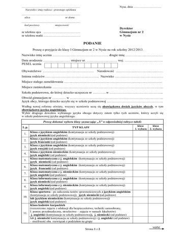 pobierz podanie - Gimnazjum nr 2 im. Karpatczyków w Nysie