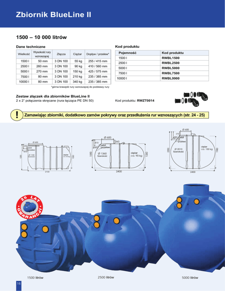 Zamawiaj"c zbiorniki, dodatkowo zamów pokrywy oraz przed!u#enia rur wznosz"cych (str. 24 - 25)