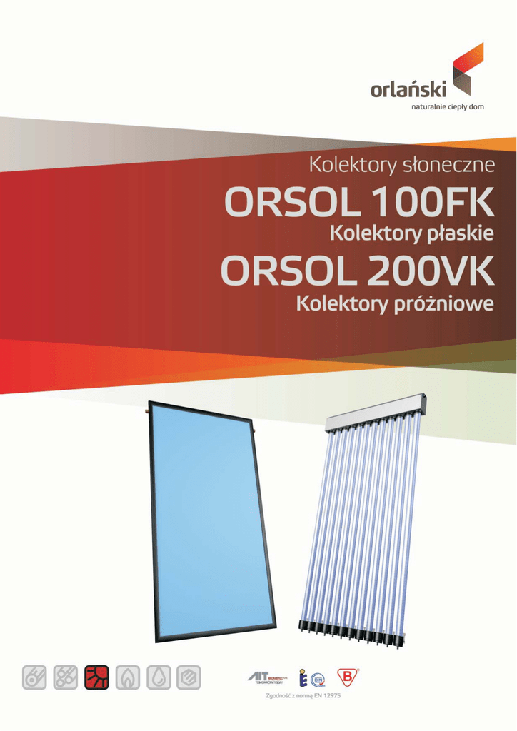 ORSOL 100FK Kolektory p³askie Instalacje solarne przy pomocy kolektorów ORSOL 100 FK zamieniaj¹ energiê promieniowania s³onecznego w ciep³o u¿ytkowe. Wytworzone w kolektorach s³onecznych ciep³o przenoszone jest przez czynnik roboczy do zbiornika wody u¿ytkowej lub grzewczej, w którym zostaje zakumulowane. Efektywn¹ pracê systemu nadzoruje ró¿nicowy regulator temperatury wspó³pracuj¹cy z pomp¹ obiegow¹. NIEPOWTARZALNY DESIGN Kolektory ORSOL 100 FK po zamontowaniu na dachu tworz¹ wizualne wra¿enie jednej tafli szk³a. Dla porównania standardowe p³askie kolektory o konstrukcji ramy posiadaj¹ specyficzne, nieestetyczne szczeliny pomiêdzy sob¹. INNOWACYJNA BUDOWA Z WYKORZYSTANIEM TWORZYWA I W£ÓKIEN SZKLANYCH W kolektorze ORSOL 100 FK zastosowano nowoczesn¹ obudowê wykonan¹ z w³ókien szklanych. Technologia polega na wyprofilowaniu pe³nej wanny z w³ókien szklanych, jako jednego elementu bez zbêdnych spoin i bez potrzeby ³¹czenia wielu czêœci. Obudowa wannowa jest du¿o szczelniejsza, posiada bardziej estetyczny wygl¹d i co najwa¿niejsze - nie wystêpuje ryzyko zwi¹zane z rozszczelnieniem po kilkuletnim okresie eksploatacji. Obudowa jest odporna na dzia³anie warunków atmosferycznych, promieniowanie UV oraz cechuje siê bardzo wysok¹ odpornoœci¹ na zmiany temperatury. Unikalna konstrukcja PODWÓJNEJ HARFY ABSORBERA PORÓWNANIE EFEKTYWNOŒCI KOLEKTORÓW Z ABSORBEREM PODWÓJNEJ HARFY Z ABSORBEREM MEANDROWYM z absorberem meandrowym. Dziêki temu straty emisji energii s¹ znacz¹co ni¿sze. W kolektorze z absorberem meandrowym tworz¹ siê strefy z podwy¿szon¹ temperatur¹. Skutkiem tego jest strata czêœci energii w formie promieniowania podczerwonego a przez to znaczne obni¿enie wydajnoœci ca³ego urz¹dzenia. W kolektorze z absorberem z podwójn¹ harf¹ ogrzana ciecz ma o 17% bardziej podwy¿szon¹ temperaturê ni¿ ciecz, która zosta³a ogrzana w identycznych warunkach przy pomocy kolektora z absorberem meandrowym. Wynika to z tego, ¿e w kolektorze z absorberem z podwójn¹ harf¹ ró¿nica œredniej temperatury pomiêdzy absorberem a ogrzan¹ ciecz¹ jest dwa razy ni¿sza w porównaniu z ciecz¹ w kolektorze P³aski cieczowy kolektor ORSOL 100 FK posiada absorber, w którym zastosowano nowoczesn¹, jak dotychczas jedyn¹ tego typu na rynku technologiê po³¹czenia p³yty z uk³adem rurowym. Technologia polega na czêœciowym walcowaniu rury miedzianej, co zwiêksza powierzchniê wymiany ciep³a 7-krotnie. Dodatkow¹ zalet¹ jest fakt, i¿ ³¹cznik, czyli lut miêkki znajduje siê poza g³ówn¹ powierzchni¹ wymiany ciep³a. Bior¹c pod uwagê fakt, ¿e przewodnoœæ cieplna miedzi, z której wykonana jest harfa i p³yta absorbera jest równie¿ 7-krotnie wiêksza ni¿ przewodnoœæ cieplna lutu. Efektem jest 14-krotnie wiêksza przewodnoœæ cieplna zastosowanego po³¹czenia. Doskona³y absorber, przemyœlana konstrukcja obudowy oraz bardzo dobra izolacja termiczna kolektora ORSOL 100 FK sprawia, i¿ osi¹ga on bardzo wysok¹ sprawnoœæ dzia³ania zarówno w okresie letnim jak i zimowym. Dane techniczne Zastosowanie: Wspomaganie przygotowania c.w.u. Wspomaganie ogrzewania pod³ogowego Wspomaganie ogrzewania basenów Wymiary: D³ugoœæ 1787 mm Szerokoœæ 1137 mm Wysokoœæ 97 mm Ciê¿ar: 40 kg Powierzchnie: Powierzchnia brutto 2,0 m2 1787 Powierzchnia otworu 1,8 m2 2 Powierzchnia absorbera 1,8 m Szyba: Rodzaj - Szk³o solarne hartowane Gruboœæ 4 mm Struktura – Pryzmat Absorber: Materia³ - MiedŸ Warstwa selektywna - TINOX Noœnik ciep³a - Glikol propylenowy + woda Forma przep³ywu - Harfa podwójna Dane dodatkowe: Temperatura postojowa - Max. 169,3°C Max. dop. ciœnienie. robocze - 20 bar Sprawnooœæ kolektorakolektora η0 - 79% Mikrowentylacja 1137 Dostêpnoœæ kolorów: Dostêpnoœæ monta¿u: 10 letnia gwarancja tak Czarny - RAL 9005 Dach, Taras, Fundament, Œciana ORSOL 200VK Kolektory pró¿niowe Instalacje solarne przy pomocy kolektorów pró¿niowych ORSOL 200VK zamieniaj¹ energiê promieniowania s³onecznego w ciep³o u¿ytkowe. Wytworzone w kolektorach s³onecznych ciep³o przenoszone jest przez czynnik roboczy do zbiornika wody u¿ytkowej lub przemys³owej, w którym zostaje zakumulowane. Efektywn¹ pracê systemu nadzoruje ró¿nicowy regulator temperatury wspó³pracuj¹cy z pomp¹ obiegow¹. W KOLEKTORZE ORSOL 200VK ZASTOSOWANO NAJNOWSZ¥ TECHNOLOGIÊ ORAZ SZEREG INNOWACYJNYCH ROZWI¥ZAÑ: NIEPOWTARZALNY DESIGN Obudowa kolektora rurowo-pró¿niowego jest wykonana ze stali nierdzewnej, co czyni go odpornym na warunki atmosferyczne. Kompozycja obudowy i rur sprawia, ¿e kolektor wygl¹da estetycznie i uszlachetnia wygl¹d ka¿dego dachu. MO¯LIWOŒÆ MONTA¯U NA KA¯DYM DACHU Specjalnie zaprojektowane zespo³y monta¿owe, wykonane ze stali nierdzewnej i aluminium, zapewniaj¹ szybki i bezpieczny monta¿ kolektorów na ka¿dym rodzaju dachu z dowolnym pokryciem. Dane techniczne Zastosowano blachê absorpcyjn¹ pokryt¹ warstw¹ Tinox-u, natomiast w wiêkszoœci tego typu urz¹dzeñ na rynku warstwa absorpcyjna jest napylana na szk³o, co powoduje obni¿enie zarówno trwa³oœci jak i sprawnoœci ca³ego urz¹dzenia. Mniejsza pojemnoœæ cieplna absorbera z blachy Tinox w stosunku do napylanego na szklan¹ rurê sprawia, i¿ w okresie mniejszego nas³onecznienia urz¹dzenia efektywniej zamienia promienie s³oneczne w ciep³o, to z kolei przek³ada siê na wiêksze oszczêdnoœci w okresie jesienno-zimowym, zimowym i zimowo-wiosennym. Zewnêtrzna czêœæ rury szklanej zosta³a pokryta warstw¹ antyrefleksyjn¹, przez co zwiêksza siê sprawnoœæ urz¹dzenia w okresie du¿ego zachmurzenia. W rurze zbiorczej zastosowano niespotykane dot¹d rozwi¹zanie przekazu ciep³a, co zwiêksza w ogromnym stopniu uzysk energetyczny z urz¹dzenia. Zastosowanie: Wspomaganie przygotowania c.w.u. Wspomaganie ogrzewania pod³ogowego Wspomaganie ogrzewania basenów Wymiary: D³ugoœæ 2186 mm Szerokoœæ 1000 mm Wysokoœæ 124 mm C