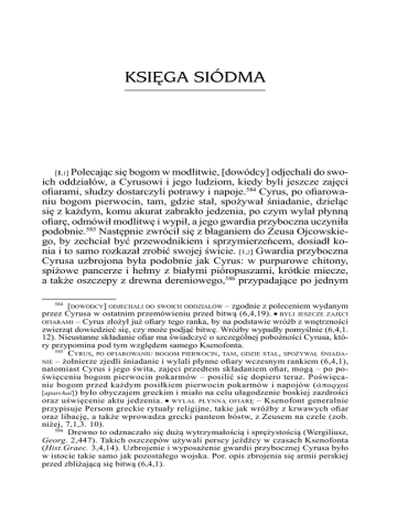12). Nieustanne składanie ofiar ma świadczyć o szczególnej pobożności Cyrusa, który przypomina pod tym względem samego Ksenofonta.