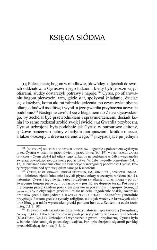[1,1] Polecając się bogom w modlitwie, [dowódcy] odjechali do swoich oddziałów, a Cyrusowi i jego ludziom, kiedy byli jeszcze zajęci