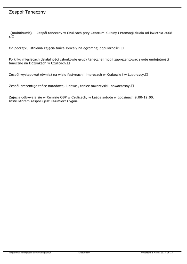 Zespół taneczny w Czulicach przy Centrum Kultury i Promocji działa od kwietnia 2008