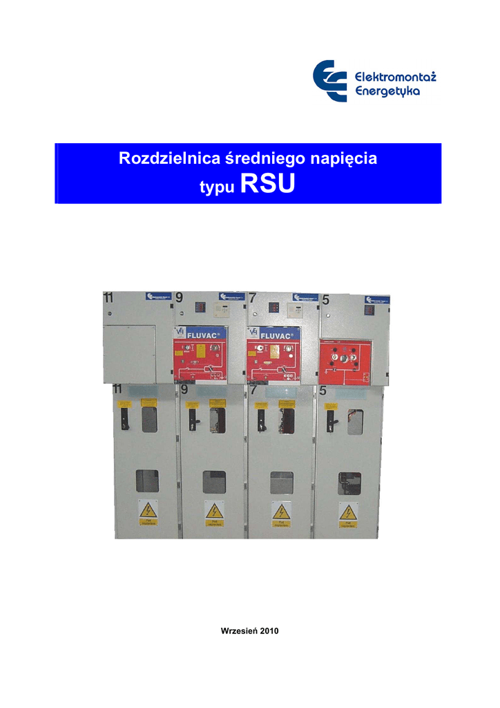 Rozdzielnica średniego napięcia typu RSU Wrzesień 2010 Elektromontaż Energetyka Sp. z o.o. Rozdzielnica typu RSU • ROZDZIELNICA ŚREDNIEGO NAPIĘCIA TYPU RSU nowoczesną niezawodną aparaturą łączeniową wymagającą rzadkich i niekłopotliwych zabiegów konserwacyjnych: łącznik zintegrowany w izolacji SF6 typu FLUVAC WSTĘP Rozdzielnice typu RSU mogą być stosowane jako rozdzielnice główne lub oddziałowe w nowobudowanych albo modernizowanych stacjach elektroenergetycznych zakładów przemysłowych, obiektach użyteczności publicznej (np. centra handlowe, kompleksy biurowe, rozrywkowe), jak też w energetyce zawodowej. W porównaniu z tradycyjnymi rozdzielnicami, rozdzielnice typu RSU charakteryzują się stosunkowo niewielkimi gabarytami i masą, prostszą budową, pozwalającą na długotrwałą pracę bez potrzeby przeprowadzania zabiegów konserwacyjnych oraz atrakcyjną ceną. Może być wyposażona w uproszczone zabezpieczenia mikroprocesorowe autonomiczne jak tradycyjne z zewnętrznym napięciem pomocniczym. firmy VEI zawierający w sobie wyłącznik jak i odłącznik z uziemnikiem rozłączniki w izolacji SF6 typu FLUORC firmy VEI z zintegrowanym uziemnikiem • wysoką odpornością na korozję, konstrukcja rozdzielnicy jest wykonana z blachy stalowej pokrytej warstwą aluminium z cynkiem, • możliwością wykonania rozdzielnicy zdalnie na odległość drogą radiową, • prostą obsługą i konserwacją. sterowanej Wysokie bezpieczeństwo obsługi zostało osiągnięte poprzez: ZASTOSOWANIE • wykonanie łukoodporne wewnętrznych, Rozdzielnice typu RSU są przeznaczone do przyjęcia i rozdziału energii elektrycznej trójfazowego prądu przemiennego o częstotliwości 50Hz, przy znamionowym napięciu do 24kV w sieciach rozdzielczych energetyki przemysłowej i zawodowej. Rozdzielnice są konfigurowane z pojedynczych typowych pól o zróżnicowanym wyposażeniu. Zamieszczone w niniejszym opracowaniu informacje i dane techniczne, które dotyczącą podstawowych typów pól, umożliwiają projektantowi zestawienie ich w oczekiwany układ rozdzielnicy. Przewiduje się opracowanie pól o wyposażeniu i konfiguracji nie ujętym w niniejszym opracowaniu. Mogą być zabudowane w obiekcie jako wolnostojące lub przyścienne. • specjalnie wzmocnioną konstrukcję pól (osłony, zamki, zawiasy), • kanały dekompresyjne - ograniczające wzrost ciśnienia ( w przypadku zwarć łukowych ) w przedziałach, • system blokad mechanicznych i elektromechanicznych • dostęp do urządzeń i obwodów niskiego napięcia odbywa się z wyeliminowaniem możliwości dotknięcia elementów pod napięciem, • zastosowanie układów kontrolnych, sygnalizacyjnych, mechanicznych wskaźników położenia i wzierników. w przypadku zwarć WARUNKI ŚRODOWISKOWE CHARAKTERYSTYKA OGÓLNA Rozdzielnica typu RSU jest rozdzielnicą w osłonie metalowej, z izolacją stało-powietrzną, wyposażoną w nowoczesną aparaturę łączeniową w izolacji gazowej z SF6, z pojedynczym system szyn zbiorczych. Pola rozdzielcze RSU charakteryzują następującymi właściwościami: się • maksymalną możliwą niezawodnością pracy, • pewnym w działaniu systemem blokad mechanicznych i elektromechanicznych, • wszystkie komponenty wyposażenia będące pod napięciem umieszczone są w uziemionych metalowych przedziałach zapewniających wymaganą łukoodporność, • długim okresem pracy, bez kłopotliwych zabiegów konserwacyjnych, • łatwym i szybkim dostępem do urządzeń dla nadzoru i konserwacji poprzez otwarcie drzwi, względnie zdjęcie pokrywy, • możliwością przyściennego ustawienia rozdzielnicy, pozwalającą na oszczędne gospodarowanie powierzchnią pomieszczenia, Rozdzielnice typu RSU z zainstalowaną aparaturą są przystosowane do pracy w pomieszczeniach, w których czynniki środowiskowe zapewniają warunki normalne wg. PN-EN 60694:2004. Specjalne warunki pracy należy uwzględnić z producentem. Temperatura otoczenia: • najwyższa temperatura • najniższa temperatura +40°C -5°C Wilgotność względna: • średnia wartość mierzona w okresie 24h • średnia wartość mierzona miesięczna ≤ 95% ≤ 90% Wysokość zainstalowania nad poziomem morza ≤1000m ≤8 stopni Atmosfera wolna od pyłów, związków (cząstek) chemicznie agresywnych, przewodzących par i gazów. Intensywność trzęsień ziemi Zgodność z normami: Rozdzielnice typu RSU spełniają wymagania poniższych norm: • PN-EN-62271-200:2007 Wysokonapięciowa aparatura rozdzielcza i sterownicza. Część 200 Rozdzielnice prądu przemiennego w osłonach metalowych na napięcia powyżej 1kV do 52kV włącznie”. Elektromontaż Energetyka Sp. z o.o. Rozdzielnica typu RSU • PN-EN 60694:2004 Postanowienia wspólne dotyczące norm na wysokonapięciową aparaturę rozdzielczą i sterowniczą. • Elektromontaż Energetyka stosuje zarządzania zgodny z PN-EN ISO 9001. elementów lub ich regeneracji, odbywa się po zdjęciu odpowiednich osłon lub otwarciu drzwi danego przedziału. system DANE TECHNICZNE Liczba faz 3 Napięcie znamionowe 12 kV 17,5 kV 24 kV Poziom znamionowy izolacji - napięcie probiercze udarowe - napięcie probiercze 1min. 50Hz 75 kV 28 kV 95 kV 38 kV 125 kV 50 kV Częstotliwość znamionowa 50 Hz Znamionowy prąd ciągły 630 A Znamionowy prąd szczytowy do 50 kA Znamionowy prąd 1- sekundowy do 20 kA Odporność łukowa 20 kA/1s Klasyfikacja IAC AFLR Stopień ochrony IP 4X Stopień agresywności korozyjnej C Gabaryty : - wysokość (+szafka obwodów pomocniczych)* - głębokość - szerokość 1850 mm (+200mm) 1000 ** mm 375; 500; 750 mm * Szafka obwodów pomocniczych stosowana jest na życzenie ** Gabaryt należy powiększyć o głębokość napędu rozłącznika (120mm) lub wyłącznika (220mm) BUDOWA POLA ROZDZIELCZEGO RSU Pola rozdzielcze typu RSU zbudowane są ze skręcanych i nitowanych elementów giętych z blachy stalowej, zabezpieczonych antykorozyjnie powłoką aluminium z 