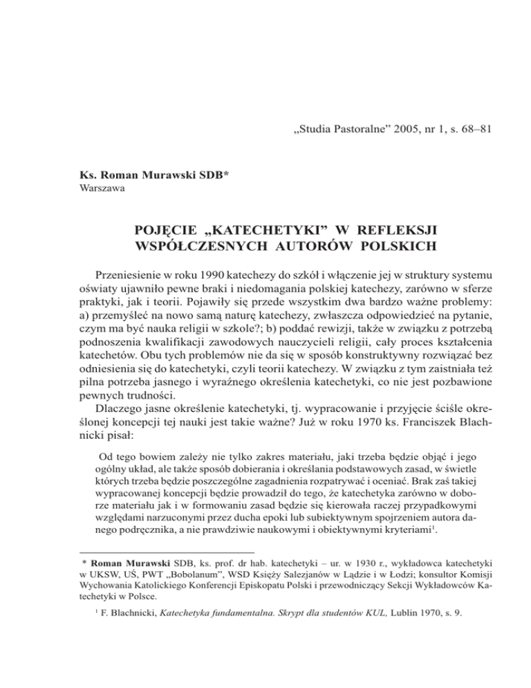 Pojęcie "katechetyki" w refleksji współczesnych autorów polskich