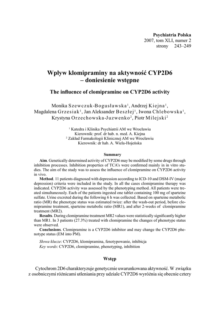 Wpływ klomipraminy na aktywność CYP2D6
