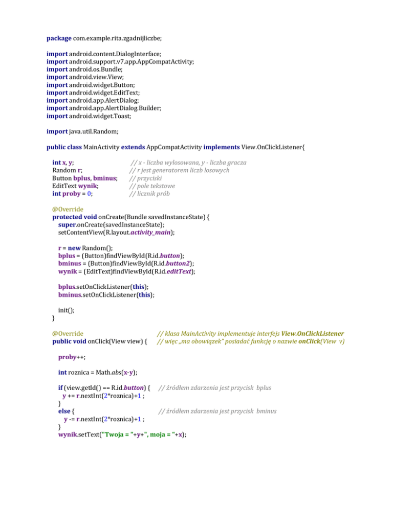 // klasa MainActivity implementuje interfejs View.OnClickListener