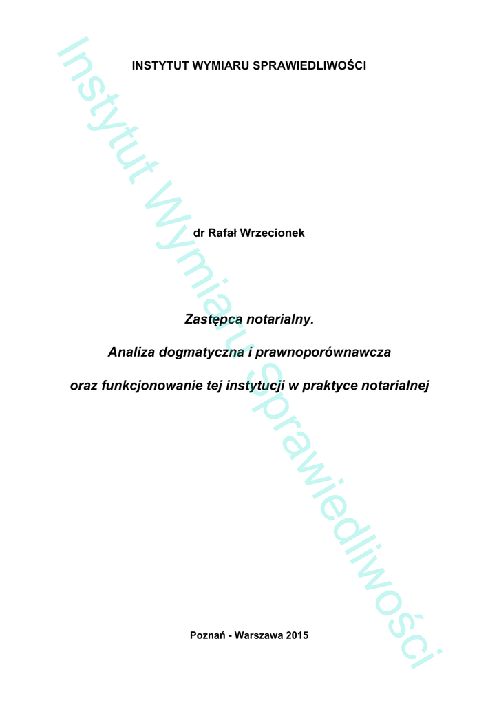 Zastępca notarialny. Analiza dogmatyczna i prawnoporównawcza