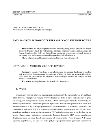 BAZA DANYCH W NOWOCZESNEJ APLIKACJI INTERNETOWEJ