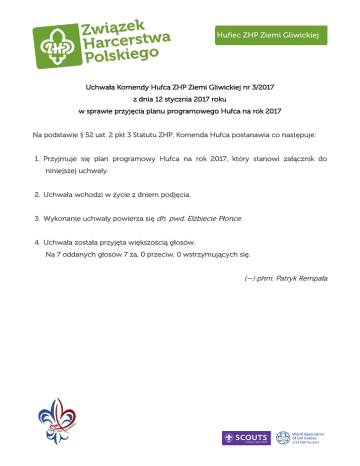 Uchwała Komendy Hufca nr 3/2017 z dnia 2017-01