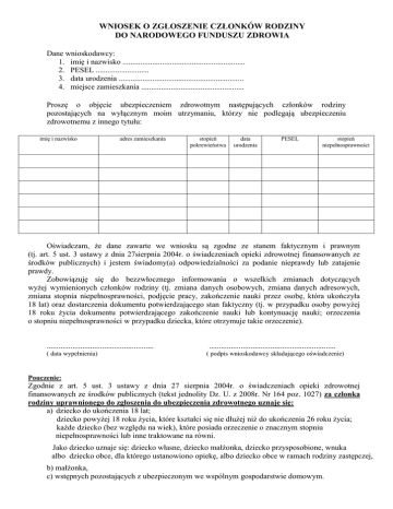 Wniosek o zgłoszenie członków rodziny do NFZ