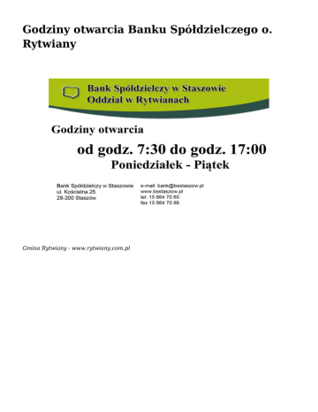 Godziny otwarcia Banku Spółdzielczego o. Rytwiany Gmina Rytwiany - www.rytwiany.com.pl