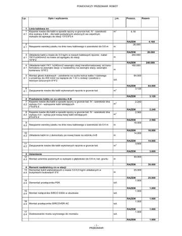 POMOCNICZY PRZEDMIAR ROBÓT Lp. Opis i wyliczenia j.m.