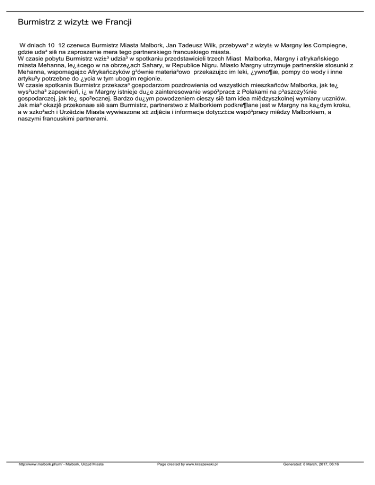 Burmistrz z wizyt± we Francji