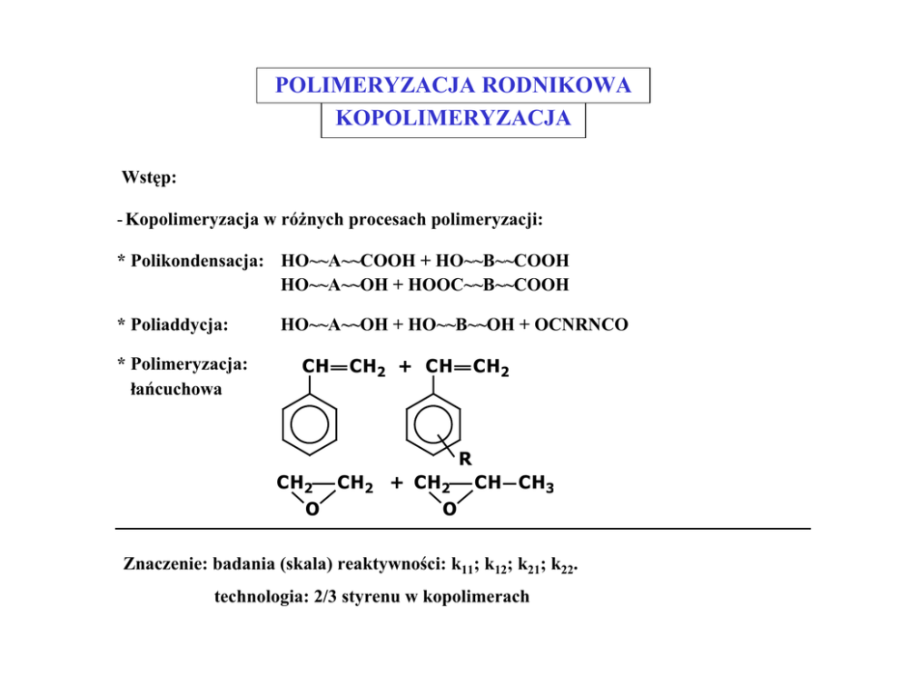 - Kopolimeryzacja w różnych procesach polimeryzacji: