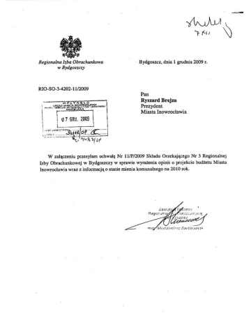 10) uchwała RIO w sprawie opinii o projekcie budżetu na 2010 r.