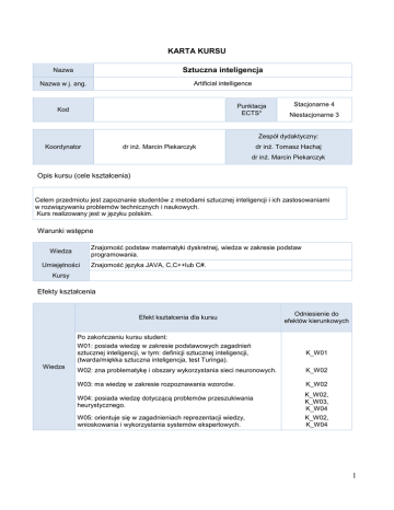 1 KARTA KURSU Sztuczna inteligencja