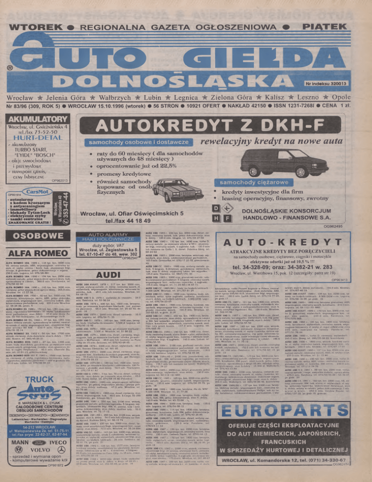 Nr 83/96 (309, RO K 5) • W R O C ŁA W 15.10.1996 (w torek) • 56 STRON • 10921 O FERT • NAK ŁAD 42150 • ISSN 1231-72681 • C E N A 1 zł.