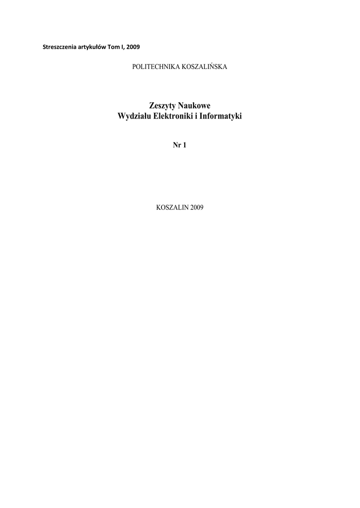 Streszczenia artykułów (PL, EN) – Tom I, 2009