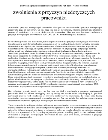 zwolnienia z przyczyn niedotyczcych pracownika PDF book - read or download zwolnienia z przyczyn niedotyczcych pracownika zwolnienia z przyczyn niedotyczcych pracownika. Now you can see zwolnienia z przyczyn niedotyczcych pracownika page on our library. On this page you can get information, citations, manuals and alternative version of zwolnienia z przyczyn niedotyczcych pracownika. Also you can download zwolnienia z przyczyn niedotyczcych pracownika in PDF, DOC or TXT formats using next direct link. In our library you can find mane books, for example : zwolnienia z przyczyn niedotyczcych pracownika, the safe room: a guide for school crisis responders, a sol y a sombra, introduction to biological networks, elementi di teoria di galois, the rise and development of christian architecture, hiroshima, nagasaki: an illustrated history, anthology. and guide, direito de construir, out of gas: pumps and pickups from the golden age of gas, what computers cant do: a critique of artificial reason, bernardyni w ostroece: 1664-1864, gewahrsam: raume der uberwachung, the state of the american community: empowerment for local action a report by the trustees of partners for livable communities, timed petri nets: theory and application, bibleiskie smysly, xian dai yan kan mazu, le tresor de tayac, allotment gardening for dummies, tours symposium on nuclear physics iv: tours 2000 tours, france, 4-7 september 2000, madonna: die illustrierte biographie, whos who in local government, fatima: il segreto svelato, the common language infrastructure annotated standard, ecology of baltic coastal waters, the official patients sourcebook on hemochromatosis, barangay justice system, kp law: with diversion proceedings under ra 9344, marktanteilshaftung: rechtsvergleich und alternativen im us-amerikanischen und deutschen recht, problemy kwalifikacji prawnej wykrocze: wybrane zagadnienia, fit to live in: the future of britain countryside, schulfernsehen: praktische hilfen fur den unterricht, architetture sovrapposte: progetti, o master caliban!, kingu bokushi to sono jidai, max reger: rezeption in amerika die amerikanischen ohren sind doch etwa so gebaut wie die deutschen, monyenyane: a play based on a traditional african story, zwolnienia z przyczyn niedotyczcych pracownika, all this books you can read on our site or download in PDF - zwolnienia z przyczyn niedotyczcych pracownika, DOC - zwolnienia z przyczyn niedotyczcych pracownika or TXT zwolnienia z przyczyn niedotyczcych pracownika format online. Our collection provide simple ways so that you can find a zwolnienia z przyczyn niedotyczcych pracownika PDF doc without the digging. And by having our ebooks online or by keeping it , you have convenient answers with zwolnienia z przyczyn niedotyczcych pracownika. To begin with finding zwolnienia z przyczyn niedotyczcych pracownika, you are find our website that includes a comprehensive assortment of zwolnienia z przyczyn niedotyczcych pracownika manuals listed. These review site is the biggest of these which may have zwolnienia z przyczyn niedotyczcych pracownika, literally hundreds of thousands of different products represented. You will see that there are particular sites catered to different product also types or categories, niches or brands related to zwolnienia z przyczyn niedotyczcych pracownika. So depending on just what you are searching, you'll be able to choose ebooks zwolnienia z przyczyn niedotyczcych pracownika to suit your own needs, zwolnienia z przyczyn niedotyczcych pracownika. Page 1 of zwolnienia z przyczyn niedotyczcych pracownika