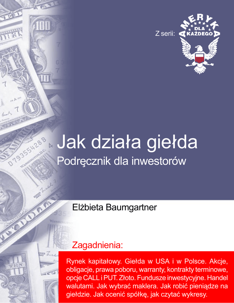 Z serii: Jak dzia]a gie]da Podr[cznik dla inwestor*w El\bieta Baumgartner Zagadnienia: Rynek kapita]owy. Gie]da w USA i w Polsce. Akcje, obligacje, prawa poboru, warranty, kontrakty terminowe, opcje CALL i PUT. Z]oto. Fundusze inwestycyjne. Handel walutami. Jak wybra~ maklera. Jak robi~ pieniqdze na gie]dzie. Jak oceni~ sp*]k[, jak czyta~ wykresy. Niniejsza darmowa publikacja zawiera jedynie fragment pełnej wersji całej publikacji. Aby przeczytać ten tytuł w pełnej wersji kliknij tutaj. Niniejsza publikacja może być kopiowana, oraz dowolnie rozprowadzana tylko i wyłącznie w formie dostarczonej przez NetPress Digital Sp. z o.o., operatora sklepu na którym można nabyć niniejszy tytuł w pełnej wersji. Zabronione są jakiekolwiek zmiany w zawartości publikacji bez pisemnej zgody NetPress oraz wydawcy niniejszej publikacji. Zabrania się jej od-sprzedaży, zgodnie z regulaminem serwisu. Pełna wersja niniejszej publikacji jest do nabycia w sklepie internetowym Salon Cyfrowych Publikacji ePartnerzy.com. Jak dzia]a gie]da El\bieta Baumgartner Por adni k“ Suk c es” 255 Park Lane Douglaston, NY 11363, USA tel. 718/224-3492 www/poradniksukces.com Ok]adka: Przemys]aw Skok, Skok Communication Arts Co., tel. 1-718/224-2948 Wydawca: Polpress Services, 255 Park Lane, Douglaston, NY 11363, tel. 1-718/ 224-3492 Redakcja: Roman Kupczak, Danuta Marciszek International Standard Book Number ISBN 0-9633932-8-6 Copyright 2007 by Polpress Services Kopiowanie ca]o<ci lub fragment*w tej ksiq\ki bez pozwolenia jej wydawcy stanowi naruszenie praw autorskich. Tre<~ niniejszej ksiq\ki ma charakter og*lnej informacji i nie powinna by~ traktowana jako pr*ba sprzedania jakichkolwiek papier*w warto<ciowych. Przed zainwestowaniem pieni[dzy czytelnik powinien rozwa\y~ swojq w]asnq sytuacj[ i ew. zasi[gnq~ opinii doradcy inwestycyjnego. Spis tresci 1. Rynek kapita]owy 1. 1. >wiat finans*w si[ zmienia 1. 2. Rynek finansowy 1. 3. Bank Rezerw Federalnych 1. 4. Komisja Papier*w Warto<ciowych i Gie]dy 1. 5. Banki komercyjne 1. 6. Domy maklerskie 1. 7. Towarzystwa inwestycyjne 1. 8. Towarzystwa ubezpieczeniowe i fundusze emerytalne 1. 9. Gie]dy papier*w warto<ciowych 1. 10. Gdzie dowiedzie~ si[ wi[cej 2. Pierwotny rynek akcji 2. 1. Rodzaje ofert 2. 2. Dlaczego sp*]ki wydajq akcje 2. 3. Pierwotna oferta publiczna 2. 4. Oferta niepubliczna 3. Ameryka#skie gie]dy 3. 1. Wt*rny rynek papier*w warto<ciowych 3. 2. New York Stock Exchange 3. 3. Jak dzia]a New York Stock Exchange 3. 4. American Stock Exchange 3. 5. Gie]dy regionalne 4.OTC–gi e ] dabe zpar ki e t u 4. 1. OTC a gie]dy 4. 2. NASDAû 4. 3. OTC Bulletin Board 4. 4. NûB Pink Sheets 4. 5. Im ni\ej tym niebezpieczniej 5. Jak mierzy~ puls gie]dy 5. 1. Rola wska^nik*w gie]dy 5. 2. >rednie gie]d 5. 3. Wska^niki obligacji 5. 4. Wska^niki rynku 5. 5. Wska^niki ekonomiczne 6. Akcje 6. 1. Wst[p do akcji 6. 2. Gdzie obserwowa~ akcje 6. 3. Akcje zwyk]e czy preferowane 6. 4. Sp*]ki du\e czy ma]e 6. 5. Doch*d czy przyrost kapita]u 6. 6. Cykliczne czy defensywne 6. 7. Akcje klasy A czy B 3 3 4 5 7 8 9 10 10 10 12 13 13 13 14 18 21 21 22 23 26 26 27 27 28 31 32 32 34 34 35 37 38 42 45 45 46 48 48 49 51 51 6. 8. Tracking stock 6. 9. Splits, spin-offs, buy-backs i inne dziwno<ci 6. 10. Fundusze akcyjne 6. 11. Gdzie dowiedzie~ si[ wi[cej 51 52 54 55 7. Obligacje i inne fixed-income securities 56 7. 1. Co to jest obligacja 7. 2. Obligacje skarbowe 7. 3. Obligacje agencji rzqdowych 7. 4. Obligacje komunalne 7. 5. Obligacje sp*]ek 7. 6. CATS i LYONS, czyli obligacje zerowe 7. 7. Obligacje zamienne 7. 8. Inne fixed-income securities 7. 9. Ryzyko fixed-income securities 7. 10. Mierniki obligacji 7. 11. Rynek obligacji 56 57 59 60 61 62 63 63 65 66 67 8. Inne instrumenty finansowe 8. 1. Trusty nieruchomo<ciowe 8. 2. Sp*]ka komandytowa 8. 3. Z]oto i metale szlachetne 9. Instrumenty pochodne 9. 1. Rights 9. 2. Warrants 9. 3. Opcje 9. 4. Kontrakty terminowe (futures) 9. 5. Opcje na futures 10. Fundusze inwestycyjne 10. 1. Fundusze powiernicze 10. 2. Fundusze zamkni[te 10. 3. Unit Investment Trust 10. 4. Exchange Traded Funds 10. 5. Hedge funds –f u ndus z ez a be z p i e c z a j q c e 10. 6. Offshore funds 10. 7. Mierniki funduszy inwestycyjnych 10. 8. Jak wybra~ fundusz inwestycyjny 10. 9. Pomoc w Internecie 11. Handel walutami 11. 1. Konta zagraniczne 11. 2. Opcje na waluty 11. 3. Kontrakty terminowe na waluty 11. 4. Currency Trading Companies 11. 5. Opcje na terminowe kontrakty walutowe 12. Tw*j makler 12. 1. Maklerzy pe]noserwisowi 12. 2. Dyskontowi maklerzy 69 69 70 72 77 77 77 78 83 86 87 87 91 92 93 96 98 98 101 104 106 106 106 107 108 109 110 110 112 12.3 .Ma kl e r z yni e z a l e \ ni–full and discount service 12. 4. Maklerzy na sieci 12. 5. Maklerzy umo\liwiajqcy day trading 12. 6. Jak wybra~ maklera 12. 7. Boiler rooms 12. 8. Jak sprawdzi~, z kim mamy do czynienia 12. 9. Arbitra\, czyli jak dochodzi~ swego 13. Twoje konto maklerskie 113 114 118 118 119 123 124 129 13. 1. Wype]nienie podania 13. 2. Rodzaje kont 13. 3. Co trzeba wiedzie~ o koncie maklerskim 13. 4. Konto got*wkowe 13. 5. Konto po\yczkowe 13. 6. Zmiana maklera 129 134 136 139 140 144 14. Jak obraca si[ papierami warto<ciowymi 147 14. 1. Co trzeba wiedzie~ 14. 2. Online trading 14. 3. Zlecenia gie]dowe 14. 4. Realizacja zlecenia 14. 5. Handel akcjami po godzinach 14. 6. Pu]apki szybkiego rynku 14. 7. Program trading 14.8 .“ Be z p i e c z ni k i ”naWa l lSt r e e t 147 149 150 153 154 157 158 158 15. Jak si[ robi pieniqdze na gie]dzie 160 15. 1. Dywidenda 15. 2. Pozycja d]uga czy kr*tka 15. 3. Kup i trzymaj 15. 4. Metoda wypo<rodkowania ceny 15. 5. Day trading 15. 6. Dobre rady dla ka\dego inwestora 160 161 163 165 166 167 16. Jak oceni~ sp*]k[ 16. 1. Analiza fundamentalna 16. 2. Analiza ilo<ciowa 16. 3. Mierniki warto<ci akcji 16. 4. Przyk]adowy raport sp*]ki 16. 5. Jak oceni~ sp*]k[ 16. 6. Jak interpretowa~ rekomendacje analityk*w 16. 7. Gdzie zdoby~ informacje o sp*]ce 17. Czytanie wykres*w 17. 1. 