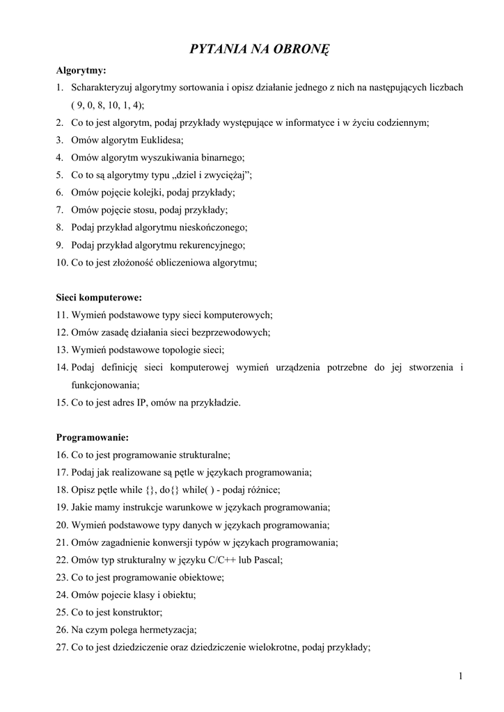 1. Scharakteryzuj algorytmy sortowania i opisz działanie jednego z nich na następujących liczbach