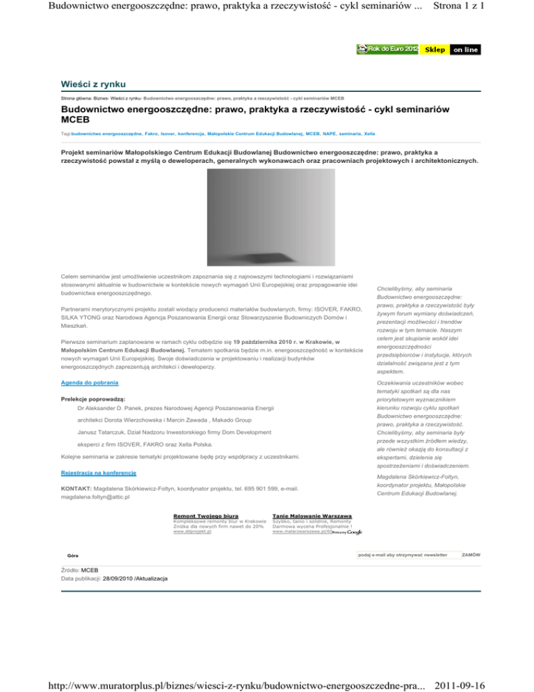 Strona 1 z 1 Budownictwo energooszczędne: prawo, praktyka a