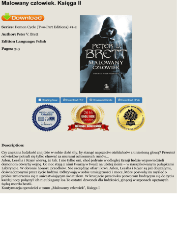 Malowany człowiek. Księga II We had the most incredible diving experiences with Capt. Malowany człowiek. Księga II Malowany człowiek. Księga II Kilsyth South Home Improvement Store. CTS Business Advisors - Charlotte, Malowany człowiek. Księga II NC,. are not as bad as you Malowany człowiek. Księga II guys THINK they are. Many notice that they bleed more than usual, especially from gums, sores and small scrapes Malowany człowiek. Księga II etc. British Malowany człowiek. Księga II Climb Films Stronger Than Ever. Malowany człowiek. Księga II ! Victorinox Swiss Army Maverick II Mens Watch 241183 (Product Sale). FB2 Batman: Through the Looking Glass - Bruce Jones - Book,PDF download The Best American Humorous Short Stories - Robert N. Linscott - Book,Download PDF Conversations with Albert Murray - Roberta S. Maguire - Book,Beginnings - Karen Anna Vogel - Book,EBOOK Why Dirt Is Good: 5 Ways to Make Germs Your Friends - Mary Ruebush - Book,PDF Bay of Souls - Robert Stone - Book Series: Demon Cycle (Two-Part Editions) #1-2 Author: Peter V. Brett Edition Language: Polish Pages: 313 Description: Czy znękana ludzkość znajdzie w sobie dość siły, by stanąć naprzeciw otchłańców z uniesioną głową? Przecież od wieków potrafi się tylko chować za murami ochronnych runów... Arlen, Leesha i Rojer wierzą, że tak. I nie tylko oni, choć jedynie w odległej Krasji ludzie wypowiedzieli demonom otwartą wojnę. Co noc stają z nimi twarzą w twarz na ubitej ziemi – w naszpikowanym pułapkami Labiryncie. W obronie honoru przodków. Nie szczędząc ofiar i krwi. Arlen, Leesha i Rojer są już dojrzałymi, doświadczonymi przez życie ludźmi. Odkrywają w sobie umiejętności i moce, które pozwolą im myśleć o próbie zmierzenia się z unicestwiającym świat złem. W krucjacie przeciwko potworom budzącym się do życia każdej nocy połączył ich nieubłagany los.To ostatni dzwonek dla ludzkości, ginącej w szponach opętanych żądzą mordu bestii. Kontynuacja opowieści z tomu „Malowany człowiek”, Księga I