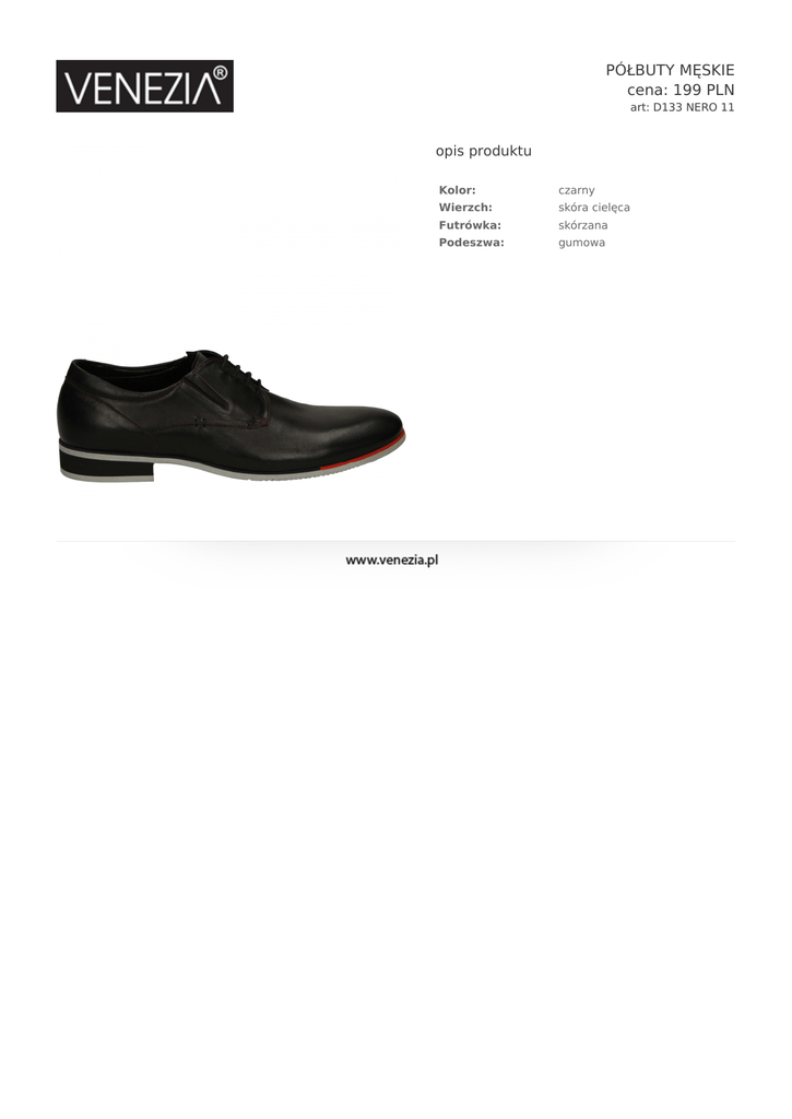 PÓŁBUTY MĘSKIE cena: 199 PLN art: D133 NERO 11 opis produktu Kolor: czarny Wierzch: skóra cielęca Futrówka: skórzana Podeszwa: gumowa