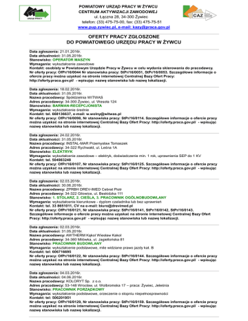 oferty pracy - Powiatowy Urząd Pracy w Żywcu