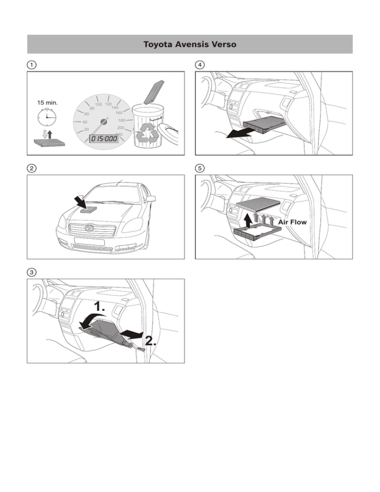 Toyota Avensis Verso 1 4 15 min. 80 60 100 120 140 160 180 40 200 20 240 0 2 5 Air Flow 3 1. 2. Toyota Yaris 1 3 2 4 2. 1. Air Flow